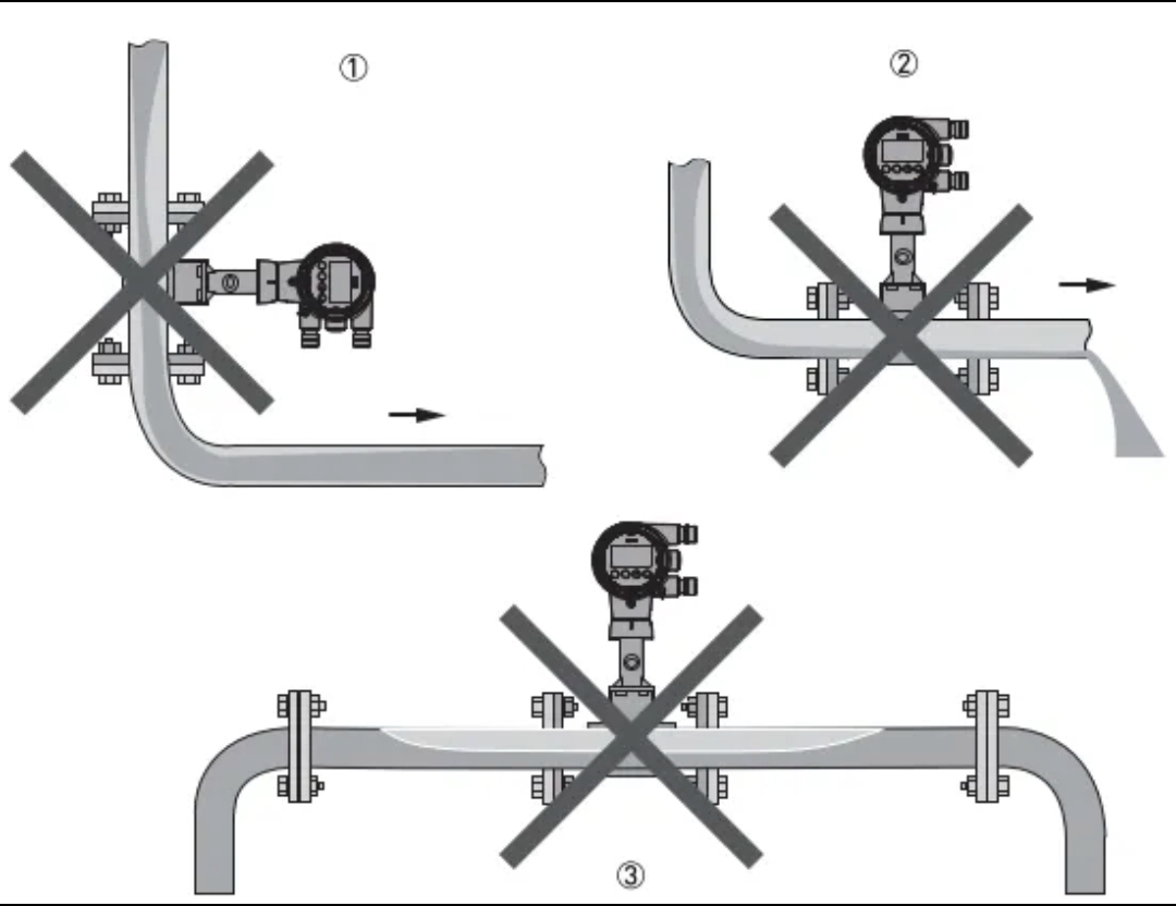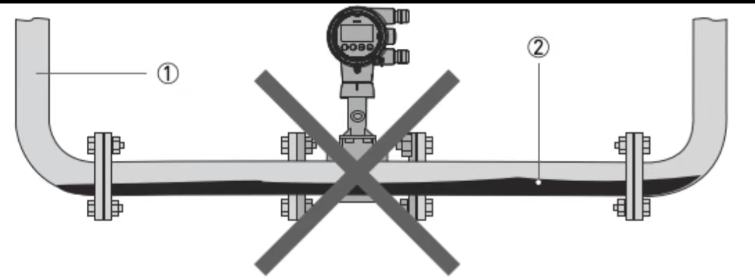 2. Debitmetrul trebuie instalat într-o locație care să asigure umplerea completă a țevii pentru a obține măsurarea normală.